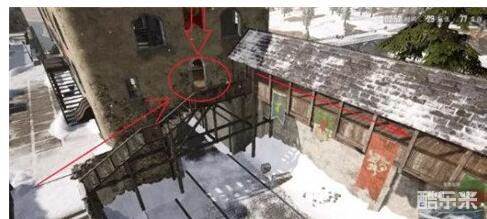如果落到南房区外围也不影响搜集装备,利用图中所标记两条路线,也可以快速进入房区搜集物资。尤其是左侧可以快速登上南房区一楼。