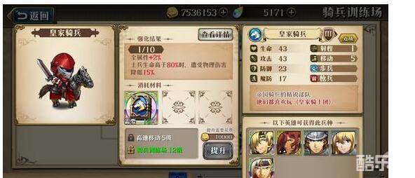 兰迪乌斯拥有的三级转职兵种有:近卫枪兵(大元帅)、近卫步兵(大元帅)、近卫骑兵(皇家骑士)、圣殿骑士(皇家骑士),练兵场解锁兵种有皇家骑兵、暗黑卫队、重戟百夫长。