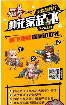 除了以上这些全新玩法和福利外,《那兔之大国梦》还将推出“猜飞姬娘赢周边好礼”贴吧活动。各位种花家的亲们,赶快来认识下这些战斗系萌娘。成功猜出她们的具体飞机型号,还有机会获得那兔正版周边以及众多小钱钱福利哦!