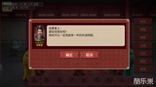 换完记得官员《封爵》增加忠诚,一开始第一次上朝不需要《开科》先《祭祀》以免天灾害国库大减