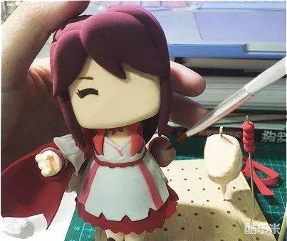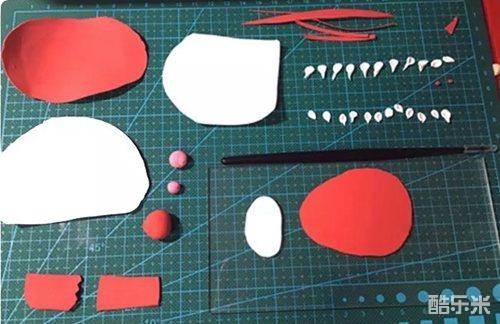 然后用颜料画出表情,之后用整块的红棕色贴出头发,记得提前调整好颜色哦。
