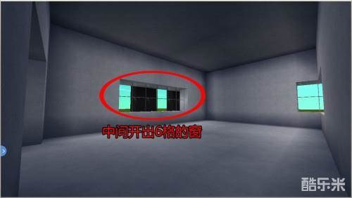 第二步:搭建6格高的墙体并封顶,右边开一个窗户如下图所见;