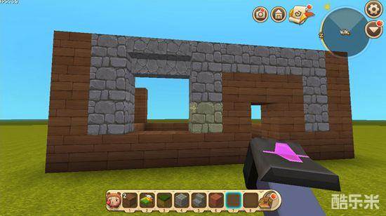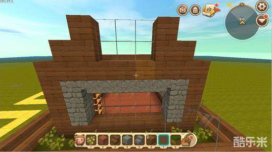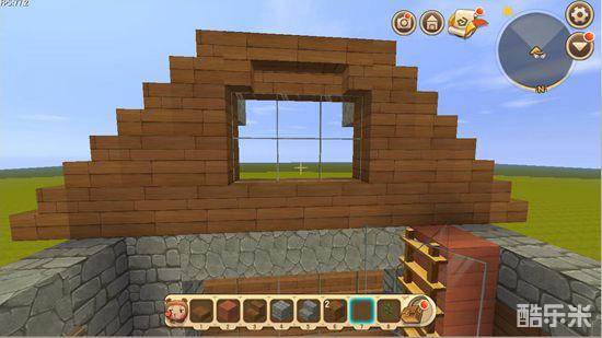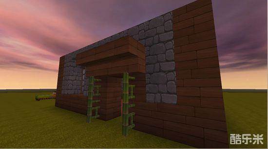 第五步,弄好正门我们来弄屋子左右两边,这里窗户也用楼梯倒放来做窗框。