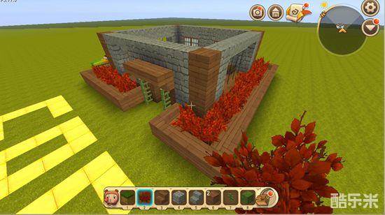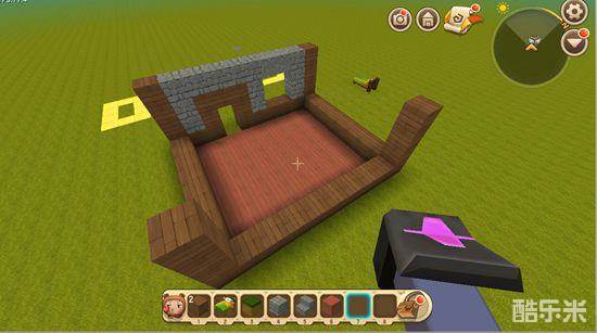 第四步,我们该铺地板啦,挖掉一层草皮,用木块铺,木块的颜色不要和框架颜色一样,显得不好看。coco这边用了红木地板哦。