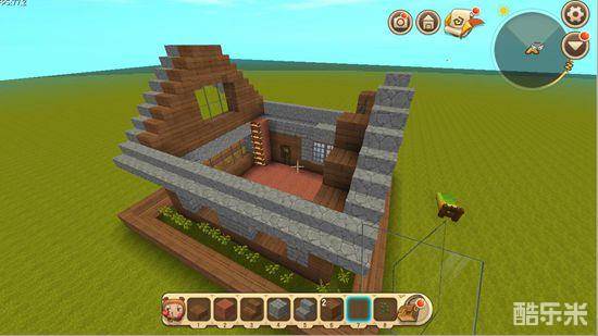 第十二步,我们用木块阶梯搭上刚刚建造的墙,再用岩石阶梯搭上做屋檐。