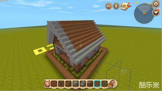 第十五步,屋顶有点平不好看,我们用一个方块加两个阶梯修饰下。