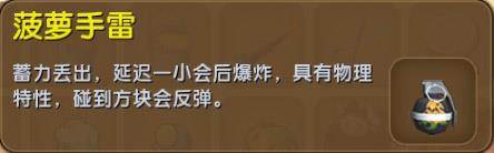 蓄力丢出,延迟一小会后爆炸,具有物理特性,碰到方块会反弹。