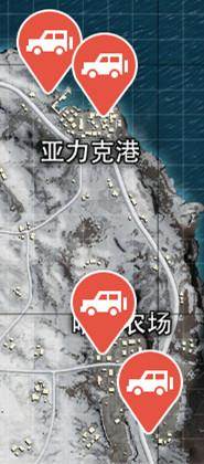 首先给大家推荐的是希恩港、布格沃镇、恐龙乐园的三连发打野点,因为希恩港在地图边缘,横向航线常常可以刷到这里,因此玩家可以一开始就跳伞,然后利用希恩港的固定刷车点来进行快速的发育,这三个资源点距离很近,而且资源不多,一般来说很少敌人会优先跳这里,所以玩家可以直接利用载具将这三个资源点搜完。