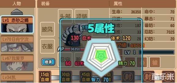 首先上火影传说赤砂之蝎初始属性图.请自动忽略7级1尾兽的加成.个人感觉比较失望.