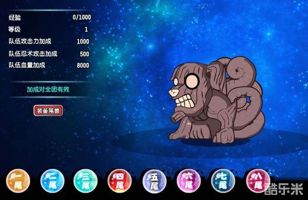8尾:500W血,单体必杀100%眩晕,主动扇形忍攻伤害(扇形:受攻击忍者与身后以及上下方一共4名忍者),30W伤害平砍,被动为:死亡后变成一条尾巴,3回合内再次死亡才算打完,否则无限复活,尾巴状态下各种防御增加,血量为400W。