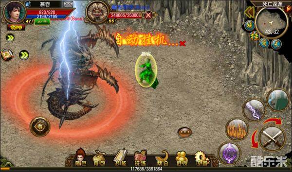 4、Boss:地下有红色光环,比任何小怪与精英都强,血量有十几万甚至上百万,攻击力与速度都很强大,一般需要组队击杀,击杀有几率掉落极品装备和一些游戏道具;