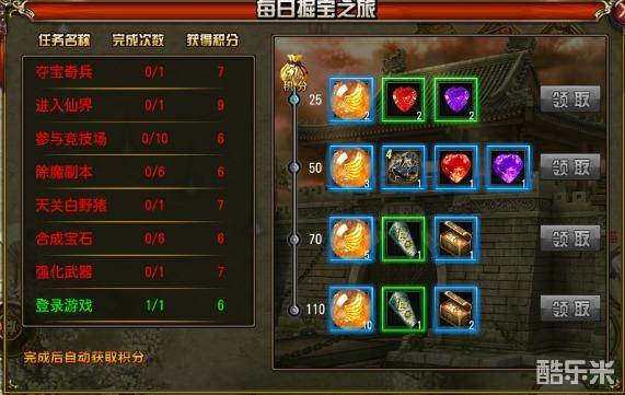 只要每天完成相应的任务,便会获得积分,当积分达到一定程度,可以领取对应的奖励;积分越高,奖励越丰富!你还在等什么?赶紧行动吧!