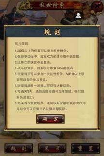 乱世纷争我们要争取每天都能通关15,最少要通关13以上,因为会奖励龙纹令,利用龙纹令我们可以在黑市里换取我们所需要的武学、侠客和道具。