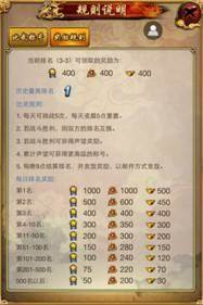 ,第一比第二多奖励700元宝!!至于何时是尽快呢,就是当你能上阵4个(3个的话也能打,但是风险比较大,四个也迟不了多少)的时候,确保每一场战斗胜利,这里提醒一下,电脑对手都是高攻低血的!!等拿到第一,还能多出两次挑战机会,等别人打你下来的时候,到晚上还能去争取一下第一。第一的奖励和第二的差距非常大!!而奖励的江湖令则很有用。