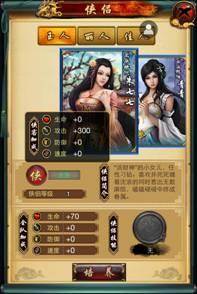 侠侣是陪伴主角征战的伙伴,每个侠侣都有不同的伴侣,能额外给伴侣增加大量属性,同时能提升全队的一定属性,不同的侠侣增加不同的全队属性(需要越多情缘锁,说明增加越多)。