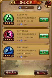 武魂可以在神秘商人那里兑换我们所需要的武侠碎片、进阶丹、玄铁以及武功秘籍!当然价格都比较偏贵。刷新一次需要10元宝。