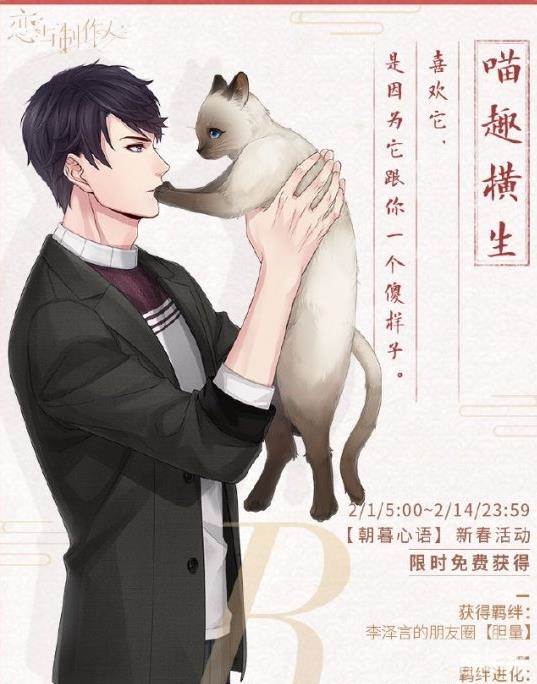 《恋与制作人》李泽言喵趣横生R羁绊获得技巧