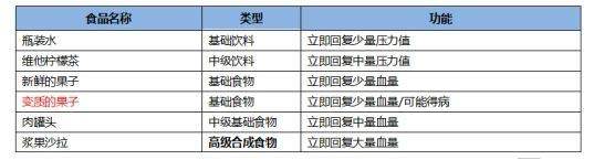 玩家可以采集野外的资源,合成新的资源。包括食品、武器等。如饮用水+新鲜的浆果,变美味果汁缓解压力;罐头+蘑菇,变成简易的沙拉回复少量HP。
