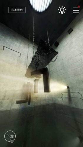 从墙壁上可以看到四个符号的顺序,大家记住这个顺序。然后点击屏幕左下角的“下潜”按钮潜入水里。