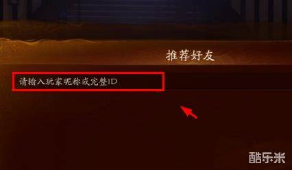 弹出推荐好友界面,在上方输入玩家的id或者昵称,即可搜索玩家,搜索出来后点击添加即可