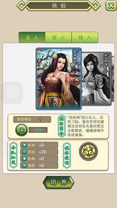 侠侣系统分为玉人、丽人、佳人,不同类型的侠侣需要消耗的情缘锁数量不一,消耗数量越高,提供的属性加成越高。我们还可以通过培养的方式来增加侠侣的加成属性。