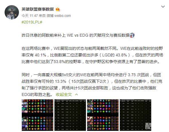 昨日休息的阿数前来补上 WE vs EDG 的天赋符文与赛后数据