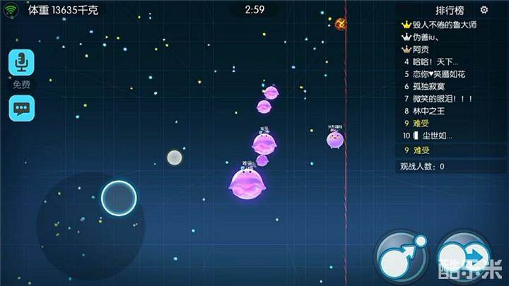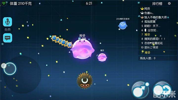 首先让我们的星宝吐泡泡,这里需要注意千万不要吐到其他星宝身上!只需要吐在其他星宝的旁边就好,这时对方受不住诱惑来吃我们吐出去的泡泡,那么我们立马向吐泡泡的方向分裂一个星宝分身出去,这样我们的星宝分身可以瞬间收掉吐出去的泡泡,并且吃掉那个想来吃我们泡泡的星宝。