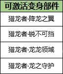 其中猎龙者至尊系列主题服饰与普通的系列服饰不同,当佩戴指定服饰部件时,会激活不一样的场景特效。