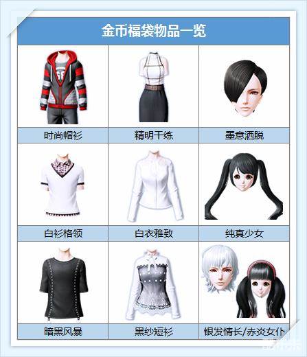 两款福袋中的各种物品等概率产出(金币福袋各物品概率为20%,点券福袋各物品概率为11.11%),小伙伴们还在等什么,快去统统收入囊中吧~
