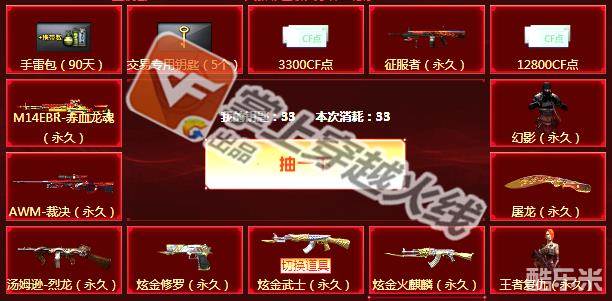 众所周知,在之前轮回活动曾经有轮回活动中抽到无数次的金牛座等重复的武器,但是本次奖池中的CF点券不仅在游戏中更加实用,而且数量也是不少了!抽不到豪华大礼没关系,这些点券也依然能够让你在游戏中随便买!
