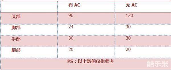 根据上述信息,我们可以看出:无AC时,被XM8命中头部必然淘汰,命中其他位置则需4~5枪。反之,若目标有AC,那么命中头部需二次补枪,其他保持一致。