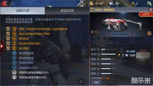如图,这是英雄级冲锋枪——MK5-机械纪元的属性面板。可以看到,机械纪元精度、主弹夹数和便携度有了长足的提升,且因配置有多项额外附加属性。因此,两者不具备可比性。