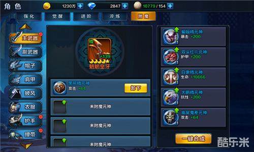 元神附魔需要空附魔槽位并且每个部位对应不同的神将元神,同类非唯一元神只能附魔一个,非唯一元神没有数量限制!目前的装备可附魔元神一般于原装备属性对应,如武器可以附魔暴击和攻击类的元神。试想将十个装备近40个槽位全部附满元神,战力值将会有多可怕!不仅如此,元神还能够进行强化,三个同类元神可合成更高阶元神,能够提升的属性几乎翻倍!