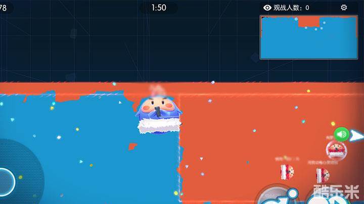 在圈地模式中,要时刻注意右上角的小地图,那里不仅可以看到队友的位置还能洞察到敌人的意图!如图中红圈所示,橘色方某一颗心怀梦想的小球,打算以一己之力占据我方大片领土。虽然梦想是伟大的,但行为是本宝宝无法原谅滴,现在我需要做的就是截断那根橘色线条中的任何一个位置,就能将他的梦想扼杀在摇篮中啦。这样不仅能够成功击杀这颗球,还能守护我方的领土。