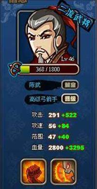 塔防三国志牛辅/陈武资料图解,塔防三国志中牛辅是法师,陈武是弓手。同属于二流武将。下面一起看看他们的属性如何。