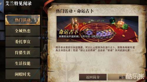 1、携带幸运草到誓言要塞的铁壁蔷薇酒馆找占星师进行占卜。(可以通过热门活动界面窗口点击活动自动寻路过去)