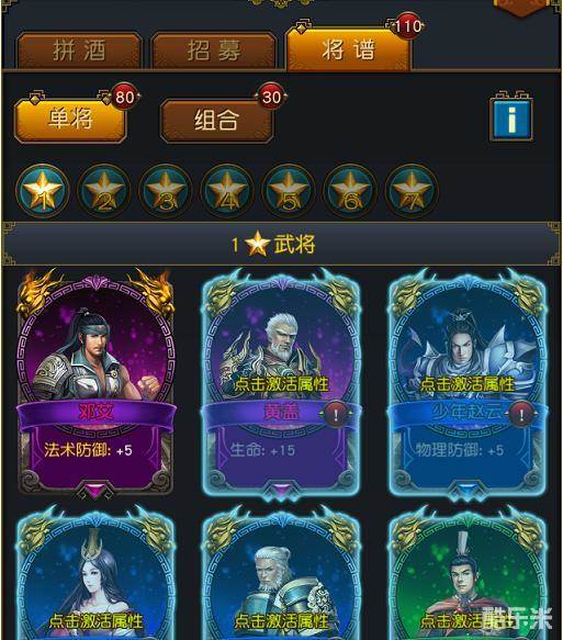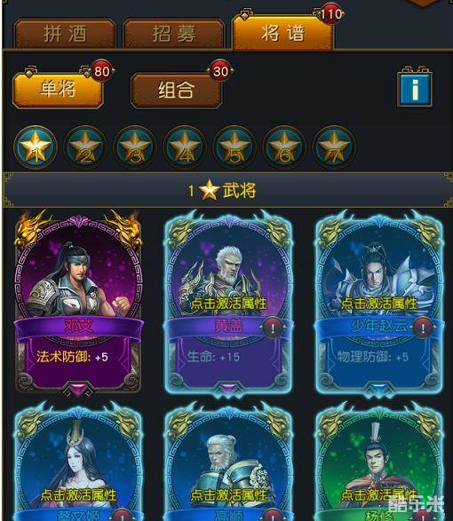 4.激活将谱组合可以获得更多的属性加成,但是只有玩家招募到一个组合中的所有武将,才能激活该组合的属性加成。