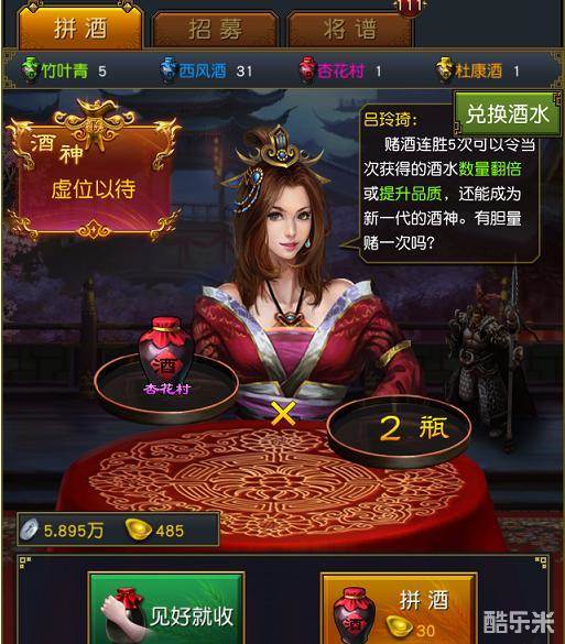 5.连续5次拼酒成功可以获得“酒神”称号。