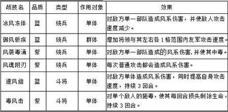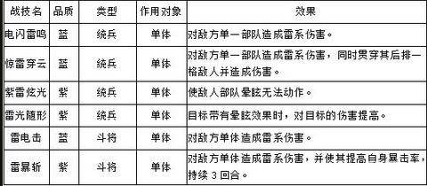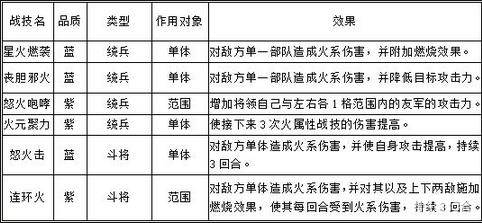战技的属性分类与将领一致,包括风、火、山、水、雷5系。