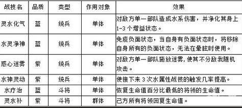 水系加成:水属战技效果提升10%,并延长时限3秒或1回合,成功施放水属战技时自身免疫负面状态3秒。