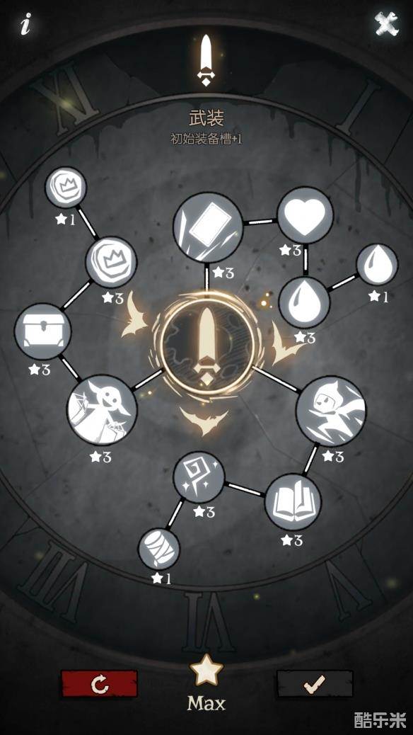 在主页面魔法书的右下角有一个怀表,点进去可以看到一个天赋页面,通过击杀不同类型的BOSS获得星星,点亮天赋能帮助玩家更顺利通关。(新版本赠送的南瓜灯可以获得双倍星星数)