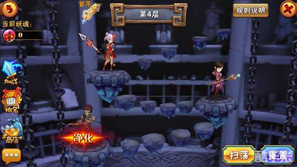 困妖塔里封锁了无数妖魔鬼怪,你需要带着小伙伴将他们全部净化!传统的爬塔模式玩法。你需要带领你的伙伴队伍,从第一层第一个魑魅魍魉开始净化,只有净化成功才能向上前行。