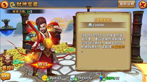 在《天书OL》的世界中,单挑各类BOSS的时候也是多不胜数,这不财神大仙就带着超级多的银币前来挑战大家(咳咳,没错,带着一堆钱来打架,这难道是来送钱的吗?)