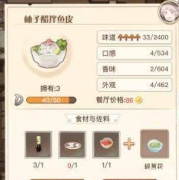 食之契约柚子醋拌鱼皮多少级解锁?柚子醋拌鱼皮主要作用是什么?来看看小编带来的食之契约柚子醋拌鱼皮值得培养吗。