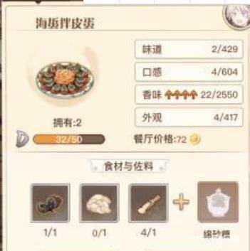 料理属性:香味菜(增加客流量),主属性上限2550;