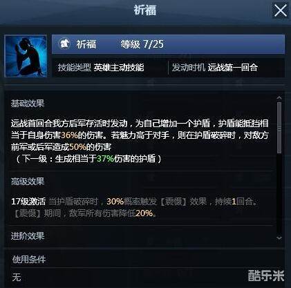 随着新出的武将不断的增多。老牌武将逐步落魄,导致培养新的武将成本大增,出了祈福这个主动技能后,至少唤起了一批老牌武将的二次青春。