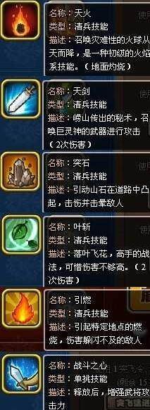 PS:武将技能分单挑技能和清兵技能,因为技能说明里都有介绍,就不再进行分类。