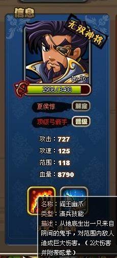 塔防三国志无双神将夏侯惇属性技能详细解析