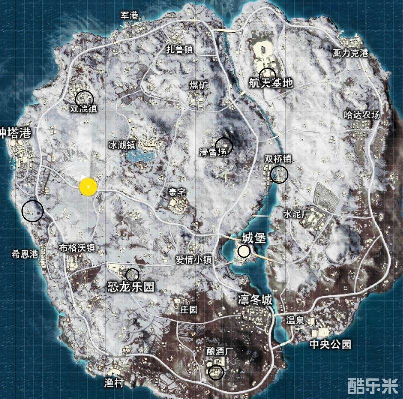 小编个人在雪地地图上找到了8处刷新地点,分别位于(从上到下):航天基地、双池镇、滑雪场、双桥镇、希恩港上方、城堡、恐龙乐园和酿酒厂。