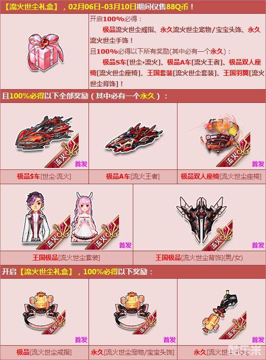2月6日-3月10日,购买对应的王国道具,100%获得王国极品戒指、永久宠物/宝宝头饰、手杖!每个礼包还可随机获得一个永久首发极品奖励,包括极品S车、极品A车、极品双人座椅、极品套装等,赶紧来参与!